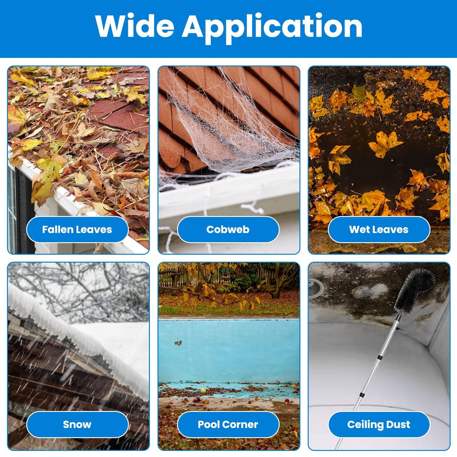 - *7 Adjustable Pole Lengths*: With 8 stainless steel extension poles(2.62-10.5ft),our gutter cleaning brush with telescoping handle extends up to 11.5ft,allowing you to effortlessly clean your gutters from the ground. Not only ensure easy and efficient cleaning,but also eliminate the need to climb a ladder and reduce the risk of accidental injuries.